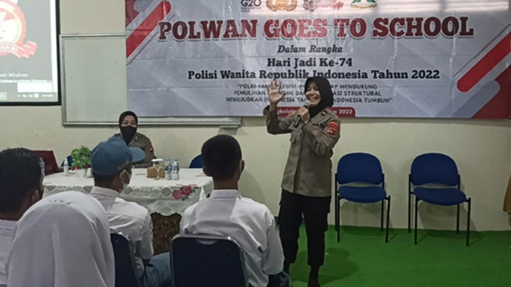 Polwan Polda Bangka Belitung menggelar kegiatan “Polwan Goes To School” ke beberapa SMA dan SMK yang ada di Pangkalpinang, Senin, beberapa sekolah yang dikunjungi yakni SMA Negeri 1, SMA Negeri 2, SMA Negeri 3, SMA Negeri 4, SMKN 4 Pelayaran